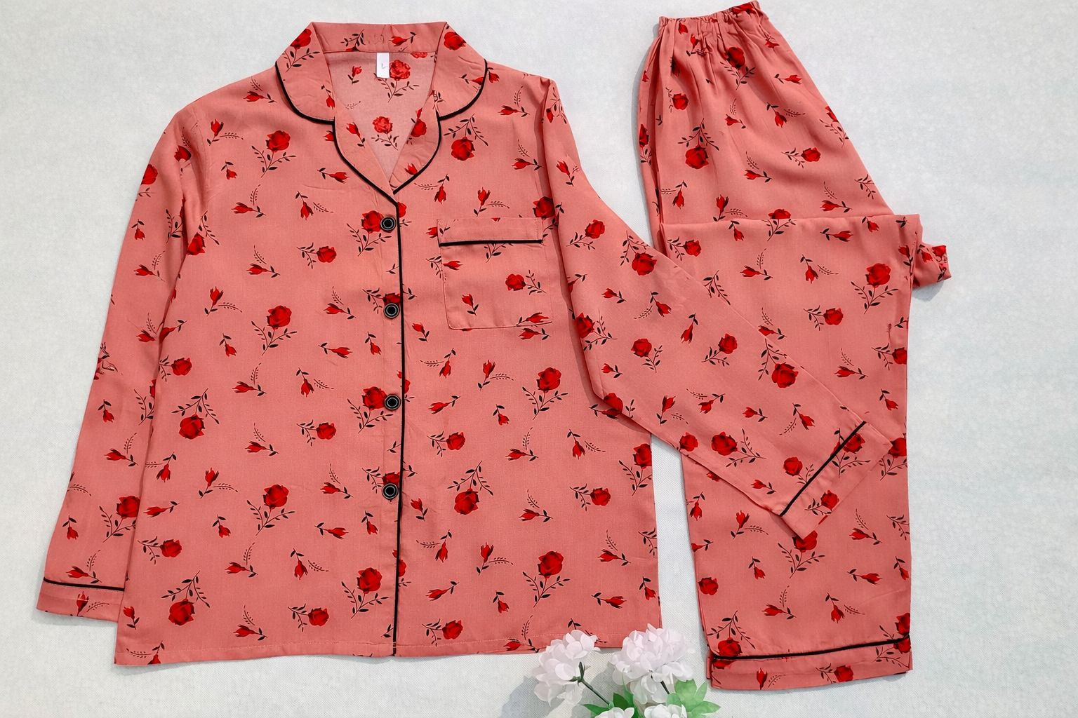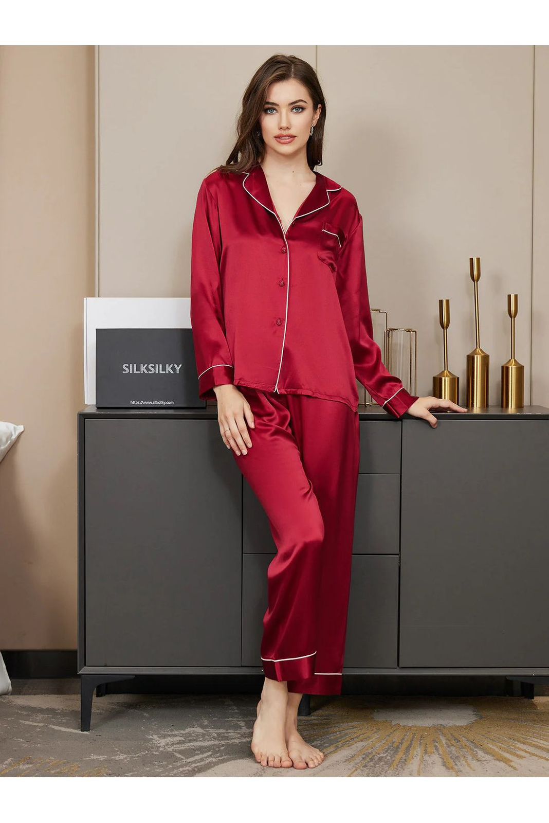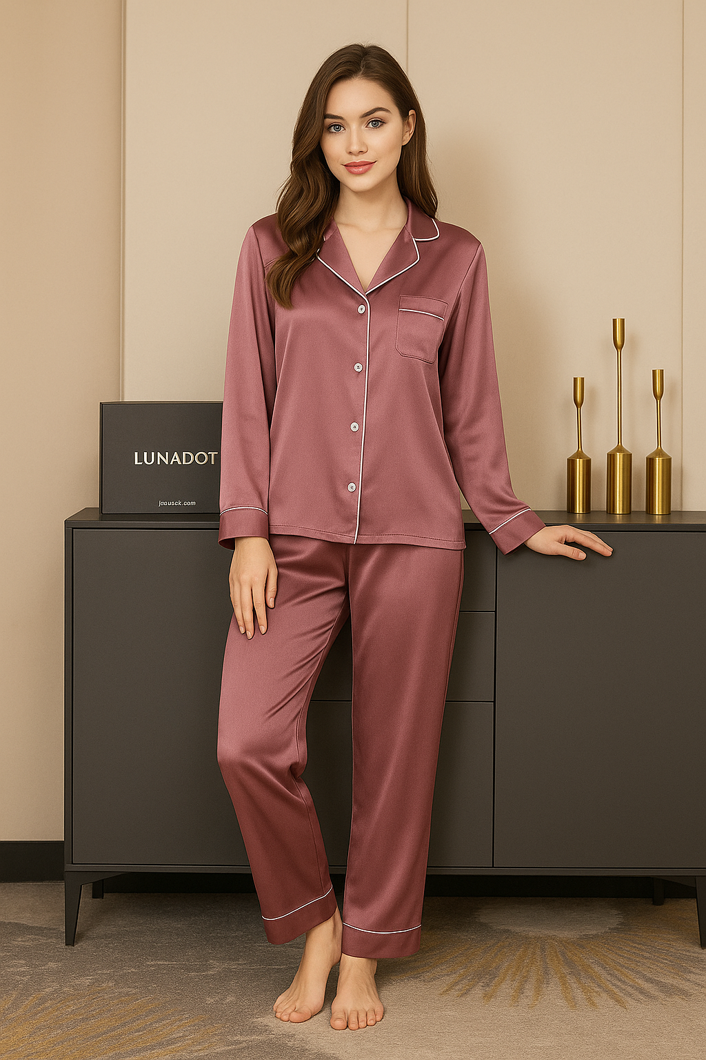 Rust plain silk PJ set