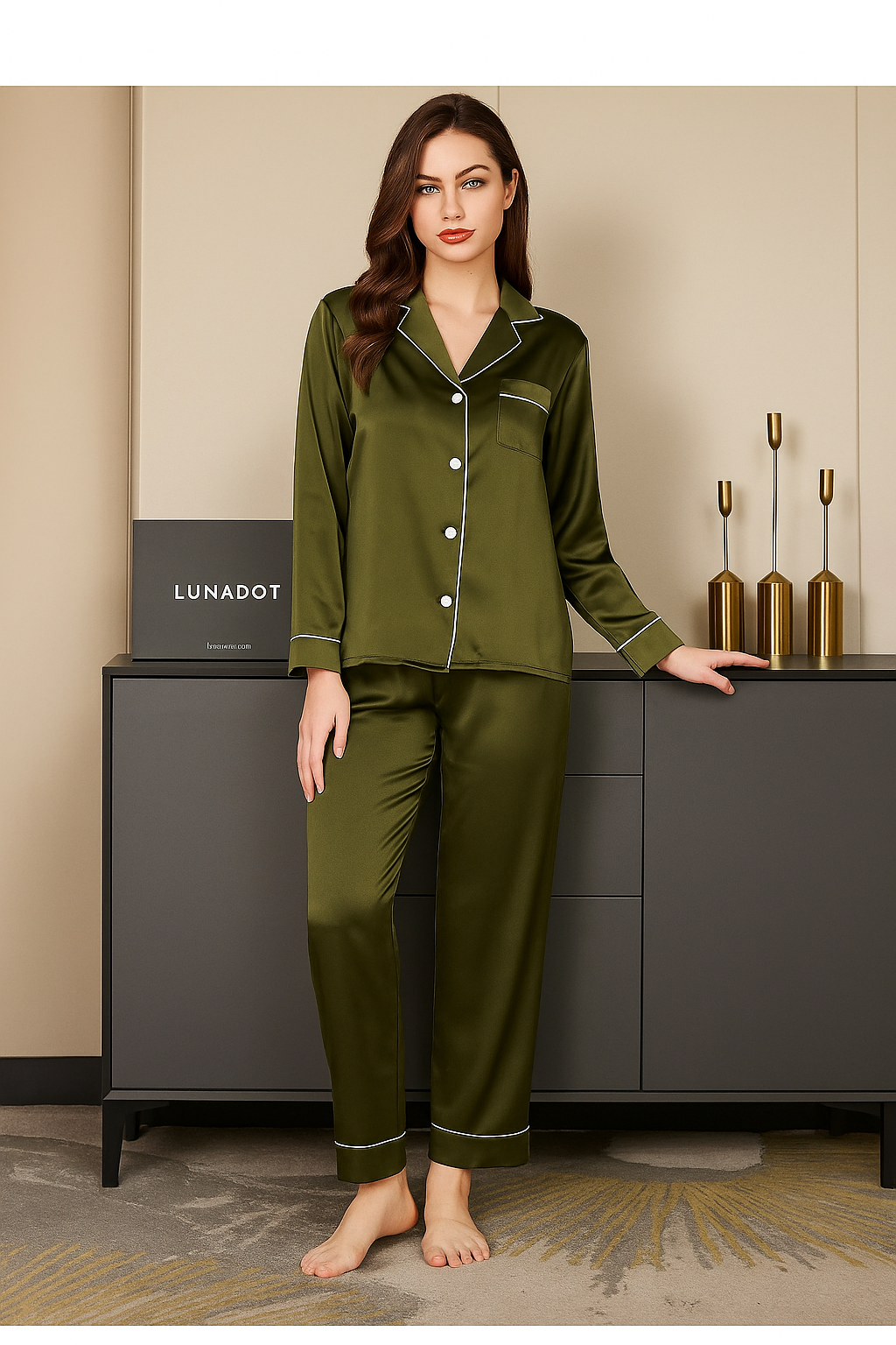 Green plain silk PJ set