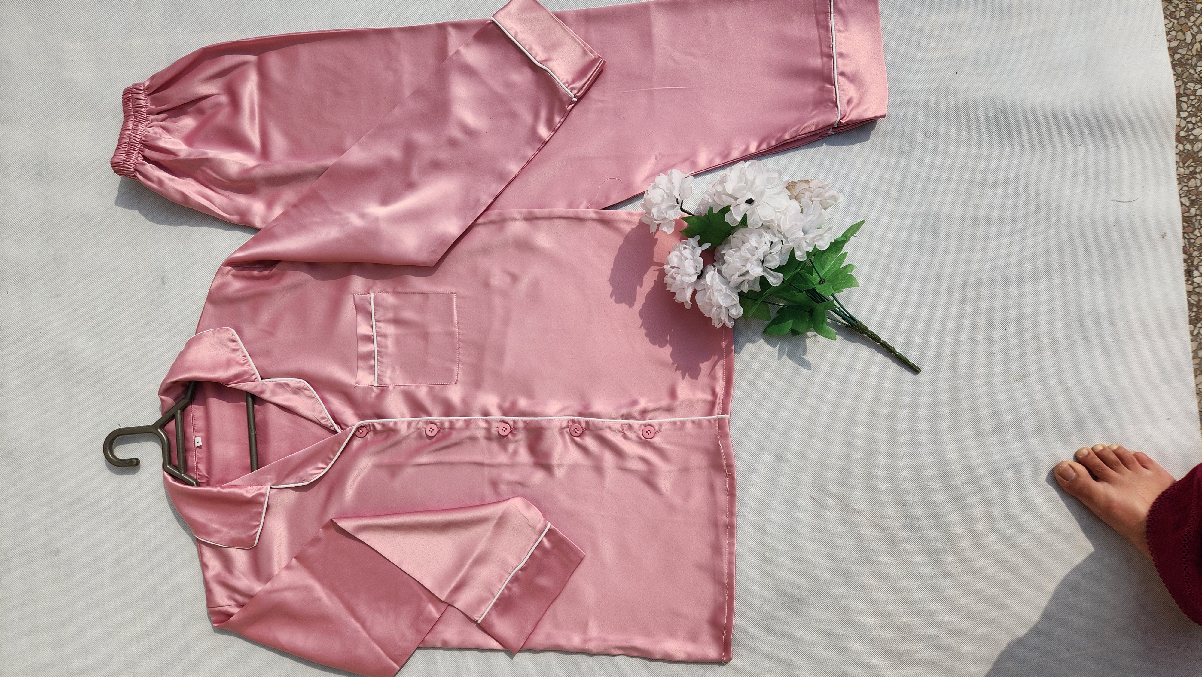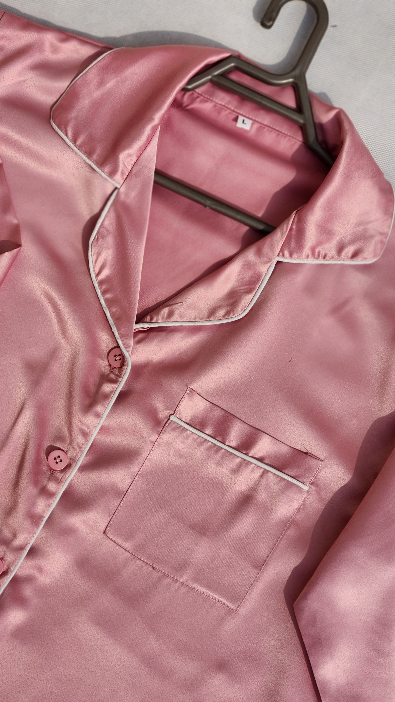 Pink satin silk PJs